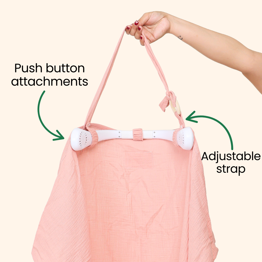 No more sweaty feeds. Enjoy cool, gentle airflow that keeps your baby comfortable — even on humid days.