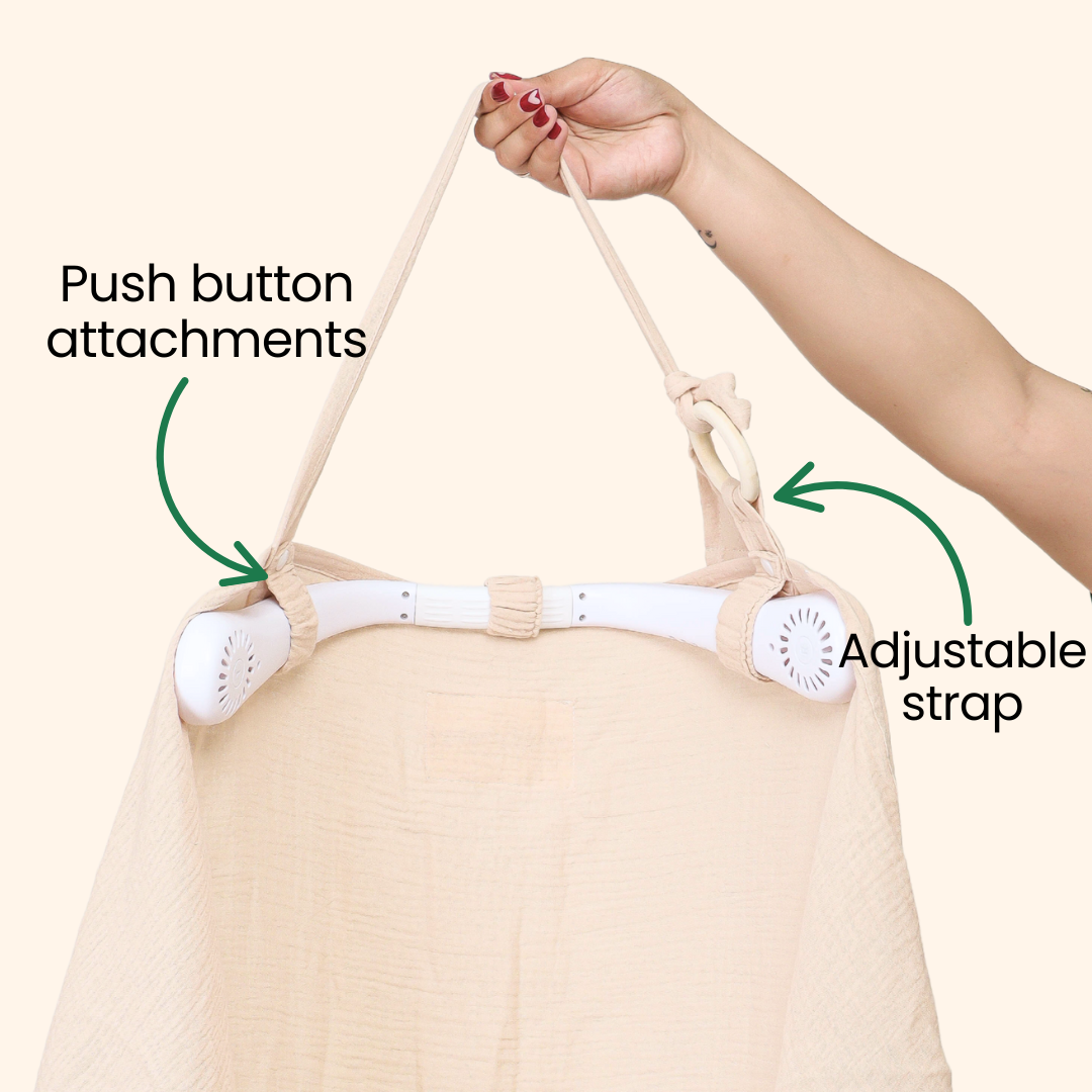 No more sweaty feeds. Enjoy cool, gentle airflow that keeps your baby comfortable — even on humid days.